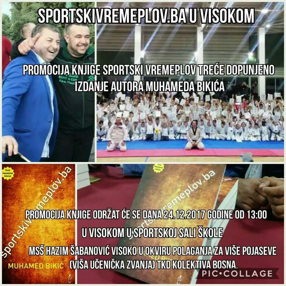 U nedjelju, 24. decembra 2017. godine u 13 sati u sportskoj sali škole MSŠ „Hazim Šabanović“ u Visokom u okviru polaganja za više pojaseve (viša učenička zvanja) TKD kolektiva Bosna, održat će se pomocija trećeg dopunjeno izdanje knjige sportskivremeplov.ba, autora Muhameda Bikića.