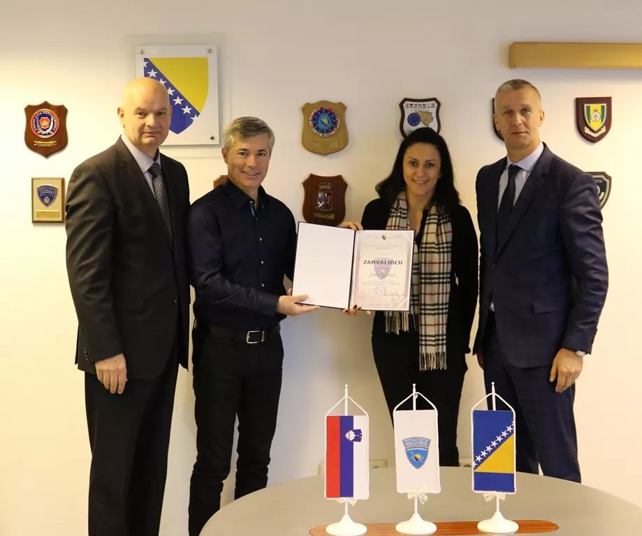 Direktor Vilić je ovom prilikom uručio gospodinu Goršeku Zahvalnicu za pruženu podršku i nesebičnu pomoć u izgradnji kapaciteta Direkcije kao i za izuzetan doprinos jačanju saradnje između policijskih službenika Slovenije i Bosne i Hercegovine te u izgradnji profesionalnih i prijateljskih odnosa.