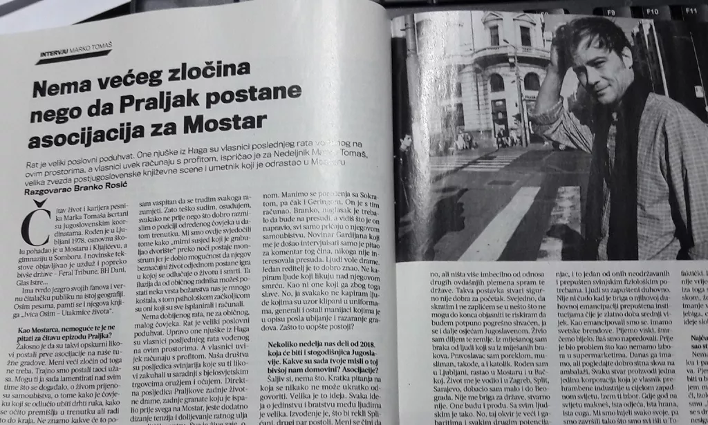 MOSTAR, (Patria) - Pjesnik Marko Tomaš izjavio je za beogradski Nedeljnik da je žalosno da su opskurni likovi poput Slobodana Praljka postali asocijacija za „naše tužne gradove.“