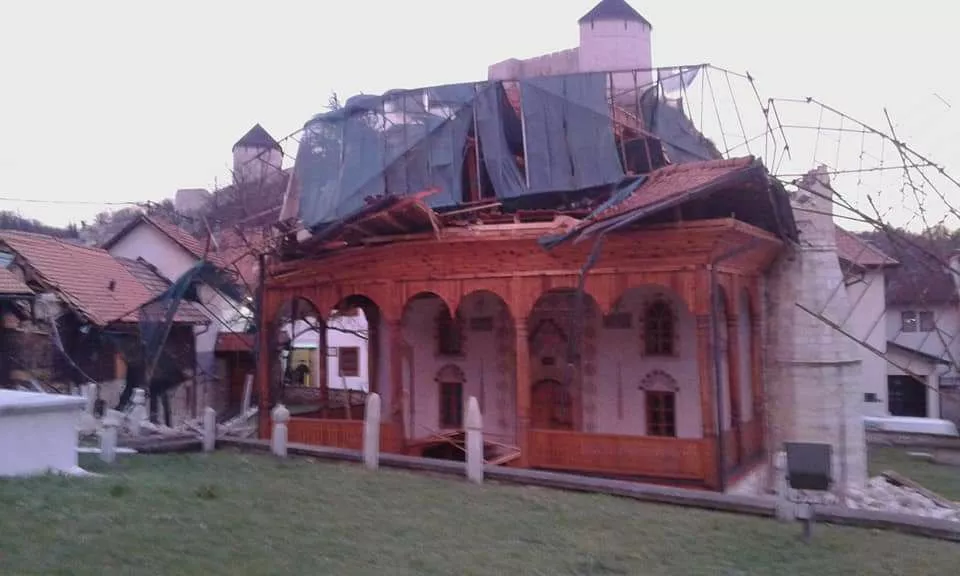 Munara Ferhad-begove džamije teško je oštećena rano jutros zbog snažnih vjetrova koji su u ovom dijelu Bosne i Hercegovine tokom noći načinili veliku materijalnu štetu.