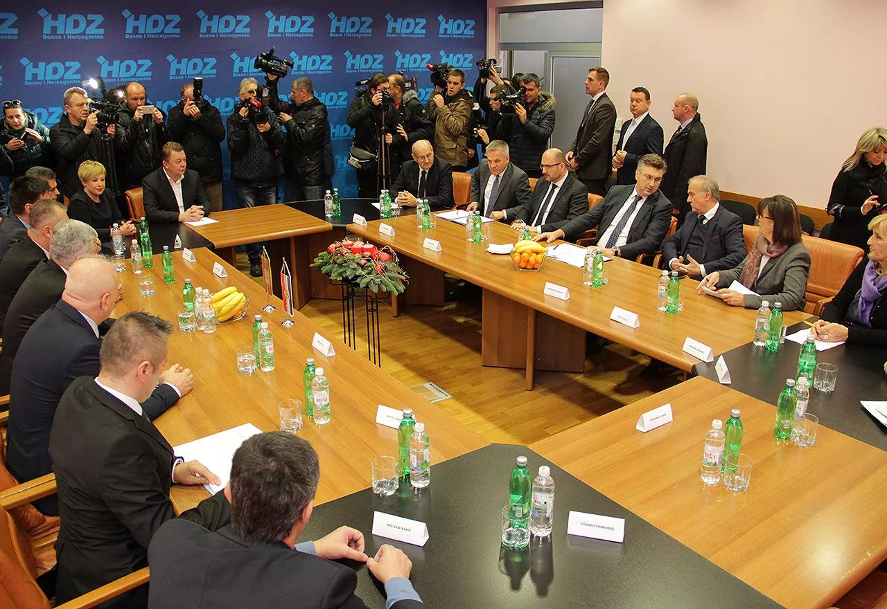 MOSTAR, (Patria) - Hrvatski premijer Andrej Plenković boravi u Mostaru, gdje se jutros sastao i s predstavnicima Hrvatskog narodnog sabora u centrali HDZ BiH.
