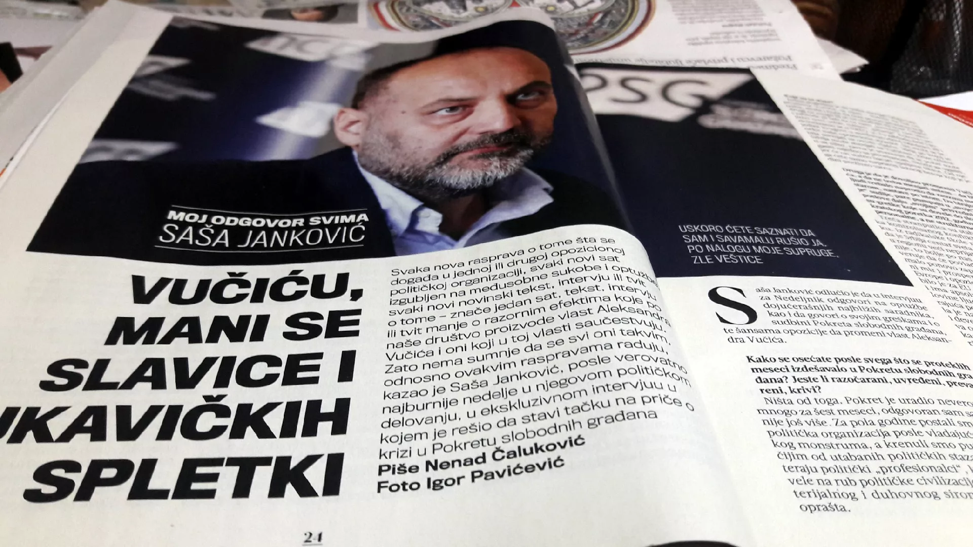 Janković je u intervjuu za taj sedmičnik rekao da je pogrešno misliti da treba mijenjati Srbiju bez promjene Vučića – štaviše, da baš on treba, može i hoće da nosi proces promjena koji drugi ne mogu ili se ne usuđuju da nose.
