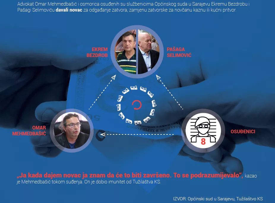 Referenti su snimljeni u trenucima kada su uzimali novac od osuđenika, ali i od Omara Mehmedbašića koji je većinu tih osuđenika zastupao.