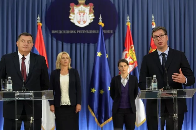 Predsjednik Vučić i premijerka Ana Brnabić sastali su se u Beogradu s predsjednikom bh. entiteta Republika Srpska Miloradom Dodikom i premijerkom RS Željkom Cvijanović. Na sastanku se govorili i o ekonomskoj saradnji između Srbije i bh. entiteta.