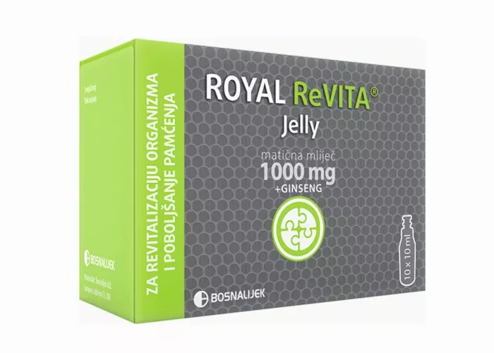 ROYAL ReVITA ® Jelly (matična mliječ 1.000 mg + ginseng) kombinacija matične mliječi i ginsenga, specijalno dizajnirana za situacije svakodnevne fizičke i psihičke iscrpljenosti izazvane brzim načinom života.