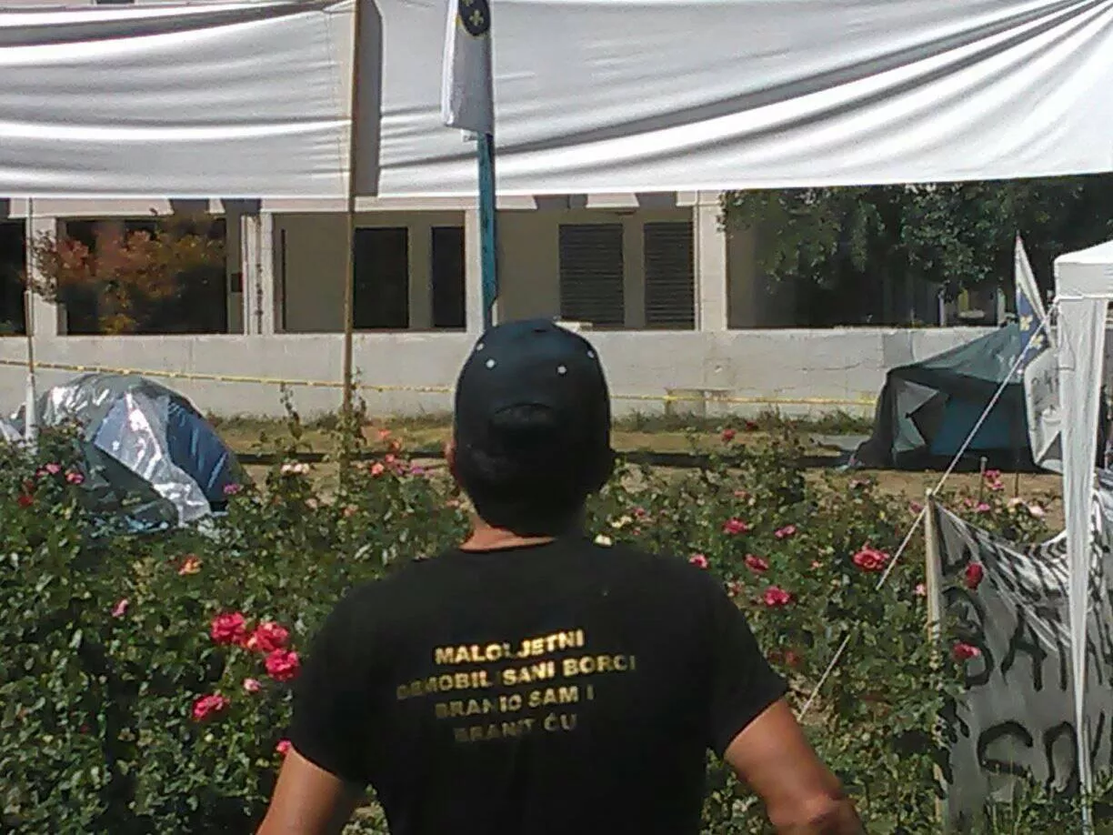 - Svoju školsku klupu zamijenio sam sa puškom. Imao sam četrnaest i po godina. 25 maja 92 godine brat mi je pogođen metkom sa četničke strane. Preselio je i dušu ispustio na mojim rukama. Zadnje što mi reče: „Pripazi mi na djecu". Danas se trudim koliko mogu da budem uz tu djecu, a hvala Allahu imam i svoju. 5.4.1993. godine od bivam i sam ranjen i ja gubim oko i još jedan gubitak dijela mene. Danas u državi koja mi uze djetinjstvo brata i moje oko živim u kampu BORACA. Gledam u ovu zgradu Vlade i neznam šta dalje da kažem – napisao je.