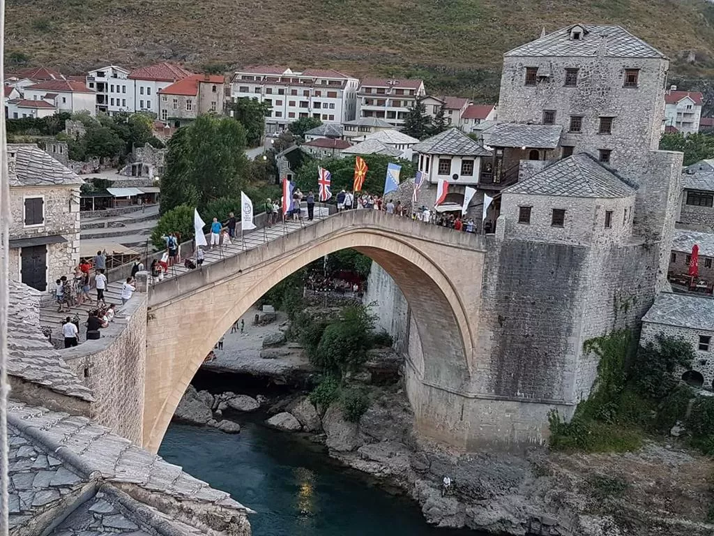 Manifestaciji prisustvuju brojni dužnosnici, a manifestacija je počela šetnjom gostiju preko Starog mosta, kao i spuštanjem cvijeća u rijeku Neretvu u spomen na sve žrtve rata u BiH.