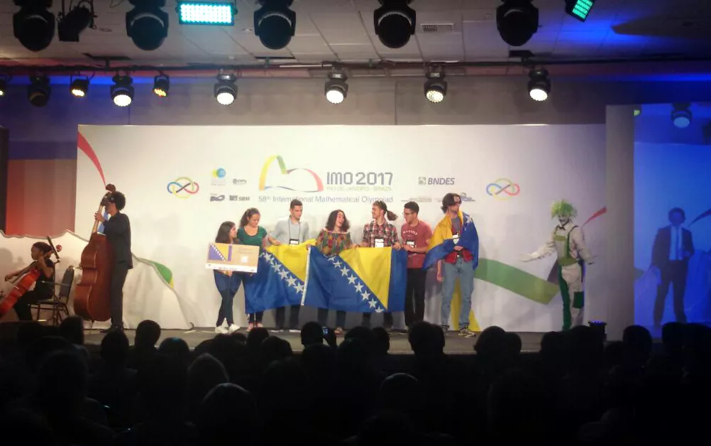 Zastava Bosne i Hercegovine zaviorila se na 58. međunarodnoj matematičkoj olimpijadi u Rio de Žaneiru, a nju su ponijeli najbolji bosanskohercegovački matematičari Zlatko Salko Lagumdžija, Emin Mrkonja i Amar Kurić iz Međunarodne škole u Sarajevu, Azur Đonlagić iz Opće Gimnazije KŠC “Sv.Franjo” iz Tuzle, Adisa Bolić sa Sarajevo koledža i Tijana Babić iz banjalučke gimnazije.