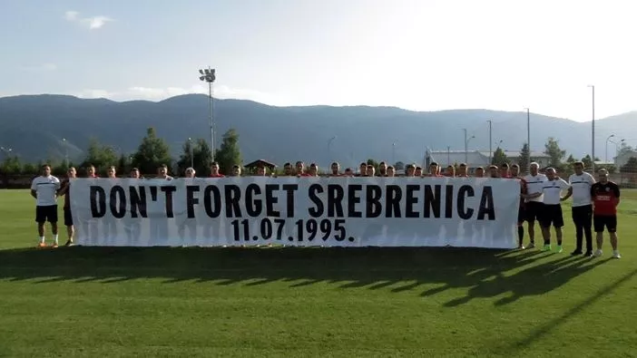 Na službenoj Facebook stranici FK Sarajevo objavljena je fotografija igrača i stručnog štaba ekipe s Koševa sa transparentnom "Don't forget Srebrenica 11.07.1995".