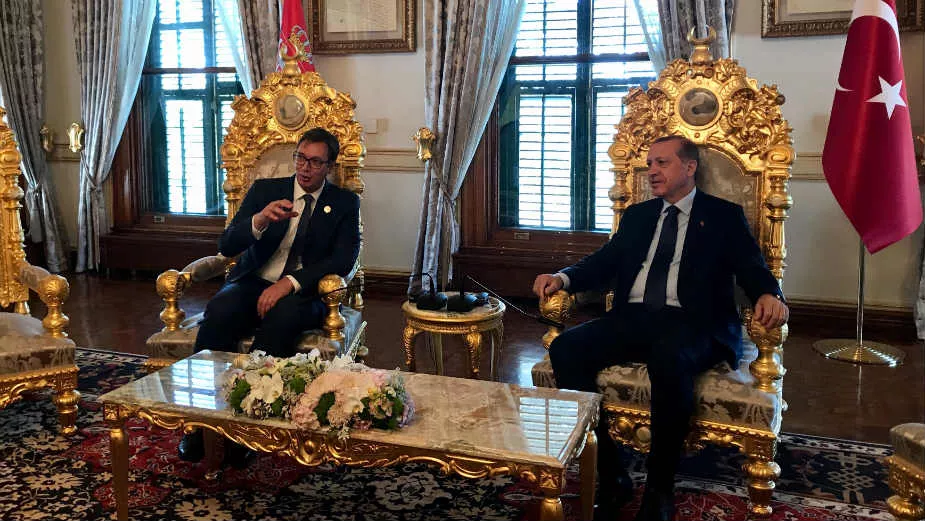 Srbijanski predsjednik Aleksandar Vučić boravi u službenoj posjeti Turskoj gdje se danas sastao s turskim predsjednikom Recepom Tayyipom Erdoganom, piše agencija Patria.