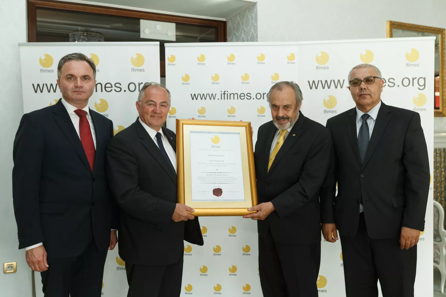 Priznanje mu je uručio potpredsjednik Savjetodavnog odbora Međunarodnog instituta IFIMES prof. dr. Ernest Petrič, bivši predsjednik Ustavnog suda Republike Slovenije i sadašnji član i bivši predsjednik Međunarodnopravne komisije UN (ILC UN).