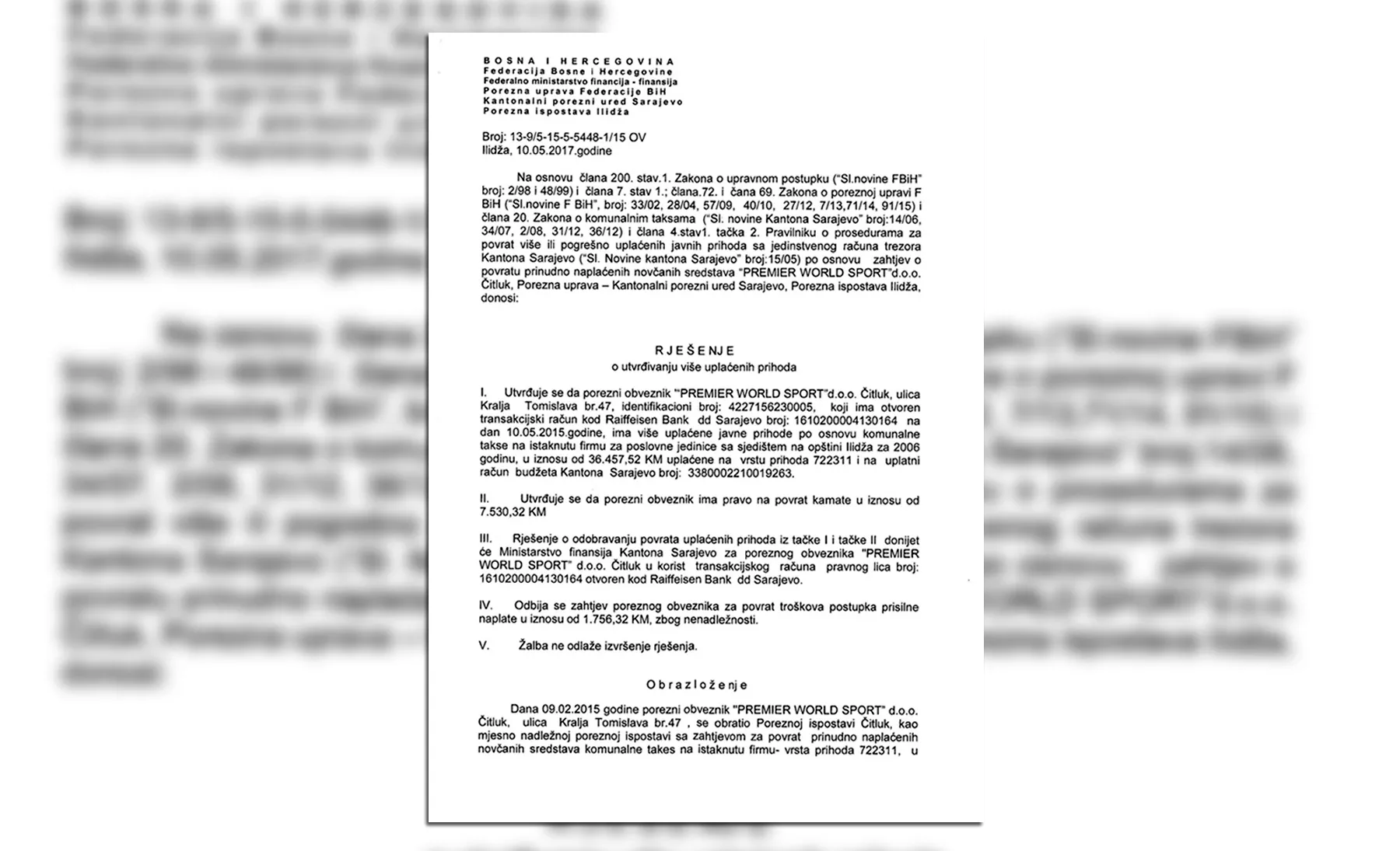 Povratak novca ne ide jednostavno. Iz Premijera objašnjavaju da se Porezna ispostava Ilidža u posljednjem očitovanju proglasila nenadležnom da vrati novac, iako su ranije naplatili novac od kladionica.