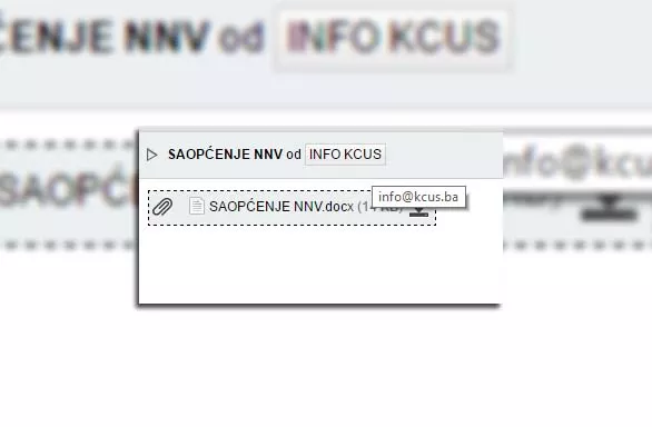 Saopćenje koje je upućeno sa adrese info@kcus.ba