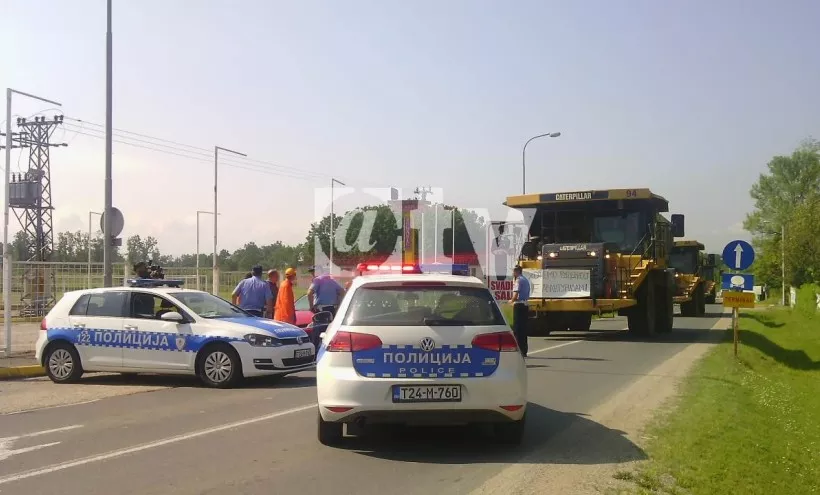 Policija ih je zaustavila, ne dozvoljavajući im da nastave kretanje damper kamionima, tako da su krenuli pješke prema Banja Luci.