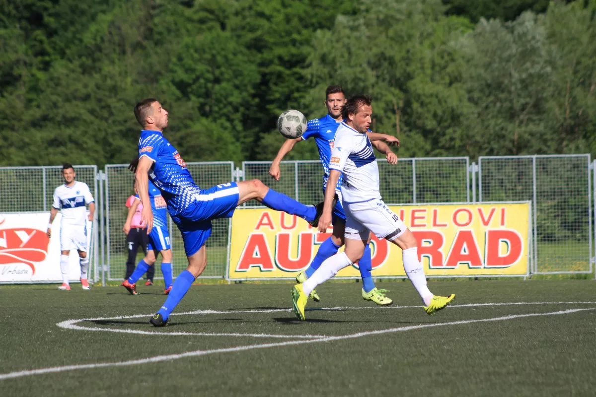 Željo je ofanzivnu igru krunisao u 30. minuti. Nakon dubinskog dodavanja Samir Bekrić izlazi pred gol Krupe i sjajnim lob udarcem pogađa mrežu domaćih za veliko slavlje oko 1.000 navijača Plavih. Marković je u 37. minuti sa distance šutirao visoko preko gola. Nakon tog pokušaja, zbog povrede, S. Stevanovića je zamijenio Stojanović. Minut poslije je Koljić zaradio žuti karton. Na poluvrijeme se otišlo vodstvom Plavih od 1:0.