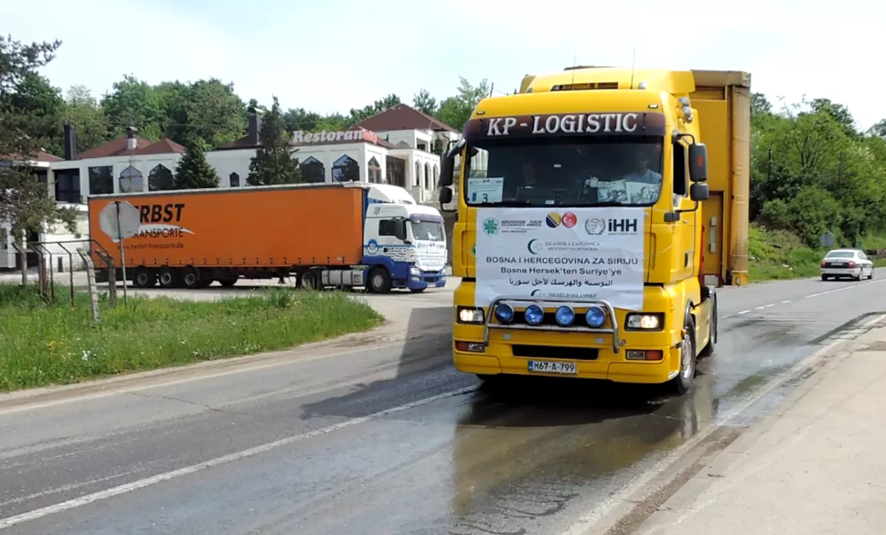 Četvrti po redu MFS-EMMAUS-ov konvoj „BiH za Siriju" sa 17 šlepera krenuo je danas put Sirije ispred kompanije Vegafruit, Doboj Istok. Donacija se sastoji od 341 tone brašna, 30.015 litara ulja, 7 paleta tjestenine, 2 palete džema, 6 paleta odjeće i 9 paleta dječijih pelena.