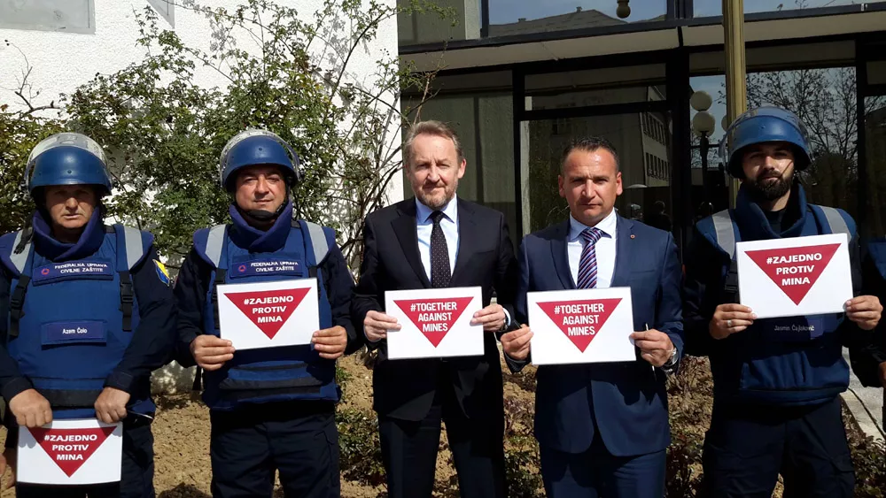 Član Predsjedništva BiH Bakir Izetbegović, potpredsjednica Federacije FBiH Melika Mahmutbegović i premijer Federacije BiH Fadil Novalić, pridružili su se danas globalnoj kampanji #TogetherAgainstMines (Zajedno protiv mina) koju provodi Federalna uprava civilne zaštite (FUCZ) povodom 4. aprila, Međunarodnog dana borbe protiv mina, prenosi Patria.