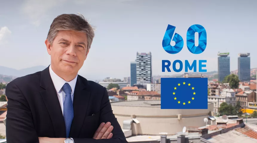 Međutim, mi živimo u nepredvidljivim vremenima a 60. godišnjica Rimskih ugovora je prilika ne samo da reafirmišemo našu predanost vrijednostima i ciljevima na kojima se temelji evropski projekat već i da poduzmemo pragmatične i ambiciozne korake.