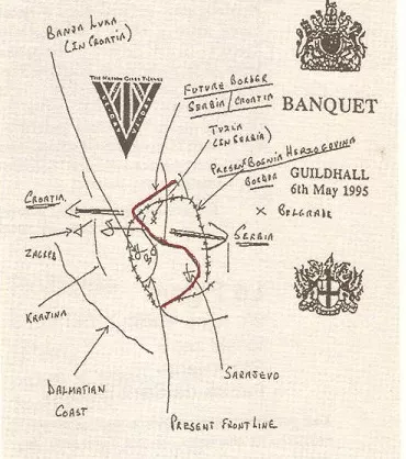 - Predsjednik Tuđman imao je aspiracije prema podjeli te susjedne zemlje, navodi vijeće u predmetu Blaškić u kojem je svjedočio britanski političar Paddy Ashdown, koji je opisao kako je 1995. Tuđman na jednoj večeri na poleđini jelovnika ugrubo nacrtao kartu bivše Jugoslavije koja je prikazivala situaciju za deset godina.