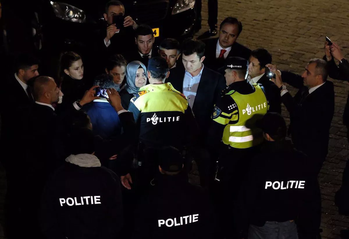 Turska ministrica porodice i socijalne politike Fatma Betul Sayan Kaya, vraćena je u pratnji policije prema njemačkoj granici nakon skoro petosatnog čekanja ispred konzulata u holandskom Rotterdamu, a okupljeni građani koji su joj pružali podršku rastjerani su primjenom sile.