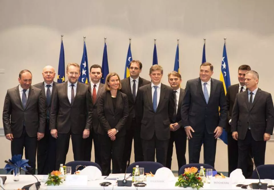 U zgradi Delegacije EU održan je sastanak lidera stranaka SDA, SBB, SNSD-a, SDS-a, DF-a, HDZ 1990 predstavnika SDP BiH, PDP-a i HDZ BiH s visokom predstavnicom EU za vanjsku politiku i sigurnost Federicom Mogherini, piše Patria.