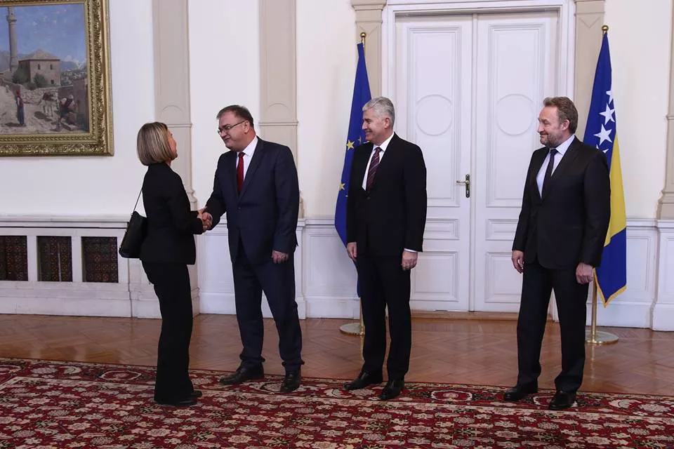 Visoka predstavnica Evropske unije (EU) za vanjsku politiku i sigurnost te potpredsjednica Evropske komisije Federica Mogherini stigla je u Sarajevo gdje se prvo susrela sa članovima Predsjedništva Bosne i Hercegovine, predsjedavajućim Mladenom Ivanićem, te članovima Draganom Čovićem i Bakirom Izetbegovićem, piše Patria.