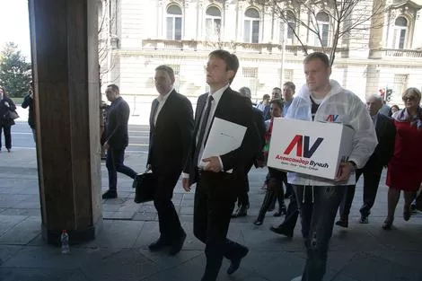 Funkcioneri SNS i koalicionih stranaka predali su danas Republičkoj izbornoj komisiji za kandidaturu Aleksandra Vučića 60.000 potpisa, koji su prikupljeni, prenosi agencija Patria.