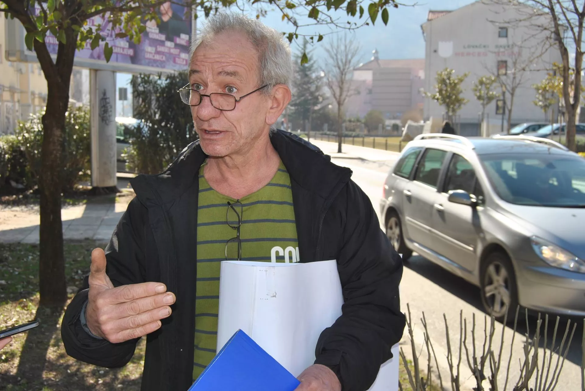 Mostarac Sead Elezović već nekoliko dana protestuje ispred Gradske vijećnice u Mostaru. Kaže da želi ukazati na problem nezakonite gradnje u zgradi u kojoj živi, u ulici Osmana Đikića 10, oko 700 metara od Starog mosta.