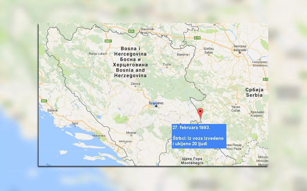 Zločin naziva „Otmica u Štrpcima“ dogodio se 27. februara 1993. godine kada su pripadnici srpskih paravojnih jedinica pod komandom Milana Lukića, uz logističku pomoć države Srbije, oteli grupu putnika iz voza 671 na relaciji Beograd – Bar. Tom prilikom oteto je, a potom i ubijeno, 18 Bošnjaka, 1 Hrvat i 1 NN lice. Većina ubijenih su bili građani Srbije i Crne Gore. Za ovaj zločin osuđeni su Nebojša Ranisavljević na kaznu zatvora od 15 godina i Milan Lukić na doživotnu robiju. Takođe, za otmicu civila iz voza u Štrpcima, koji su ubijeni na području Višegrada, Tužilaštvo BiH tereti još 10 lica, a suđenje je u toku.