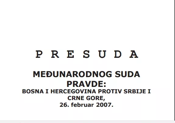 U februaru 2007. godine Međunarodni sud pravde u Hagu izrekao je presudu u tužbi BiH protiv Srbije.Srbija je osuđena jer nije spriječila genocid niti je kaznila počinioce, piše Patria.
