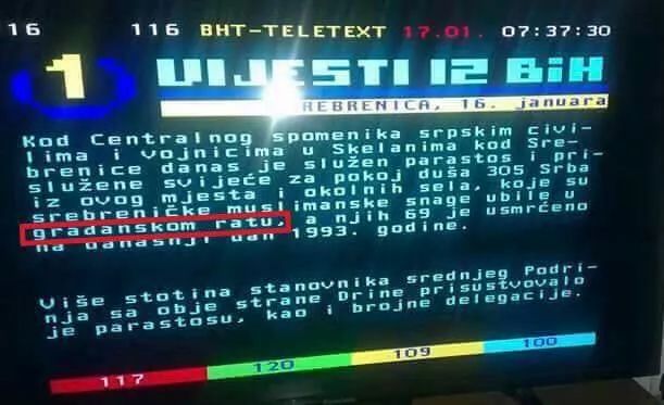 Na teletextu javnog servisa 17. januara objavljena je vijest o obilježavanju godišnjice stradanja 305 Srba iz Skelana kod Srebrenice. U vijesti između ostalog stoji da su ih “ubile srebreničke muslimanske snage u građanskom ratu”.