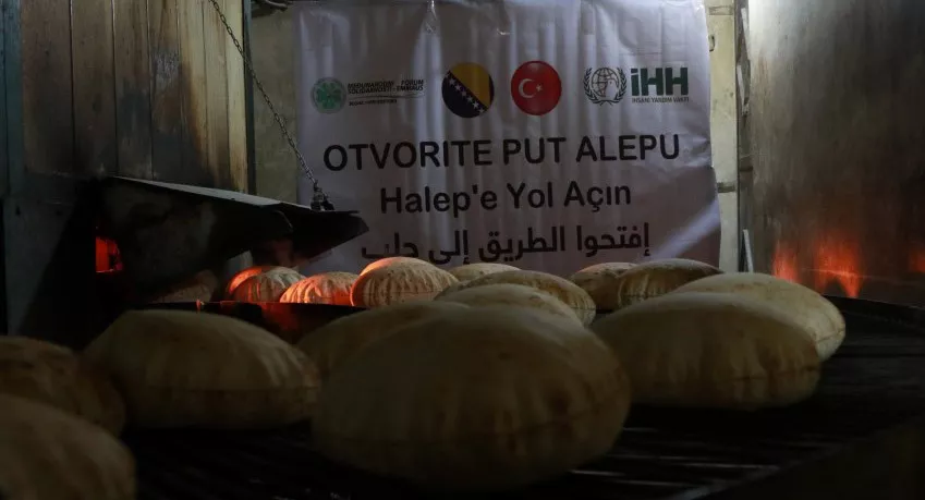 Prvih 25 tona brašna koje je 14. decembra prošle godine poslano u konvoju “Otvorite put Halepu» dostavljeno je u jednu od 46 pekara koje na području Sirije posjeduje turska organizacija IHH (Insani Yardim Vakfi). Tu se peku lepine koje se dijele prvenstveno ljudima u Siriji, izbjeglicama u kolektivnim smještajima, ali i izbjeglicama u kampovima u Turskoj.