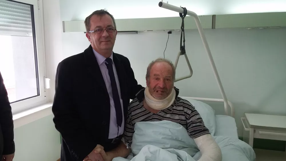 Ministar za boračka pitanja Kantona Sarajevo Muharem Fišo posjetio je danas u bolnici demobilisanog borca Armije Republike Bosne i Hercegovine Fadila Bašića, povratnika u paljanskom naselju Hotočina, kojeg je prije nekoliko dana divljački pretukao komšija Đorđe Janković.