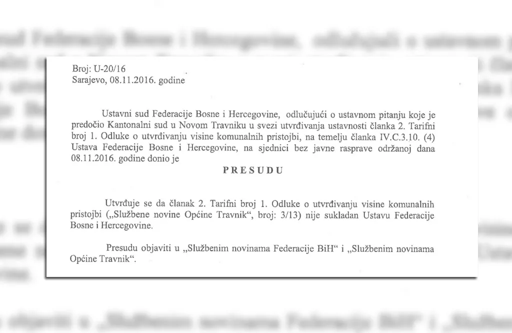 Ustavni sud Federacije BiH presudio je da povećanje komunalnih taksi priređivačima igara na sreću na području općine Travnik nije u skladu sa Ustavom FBiH.