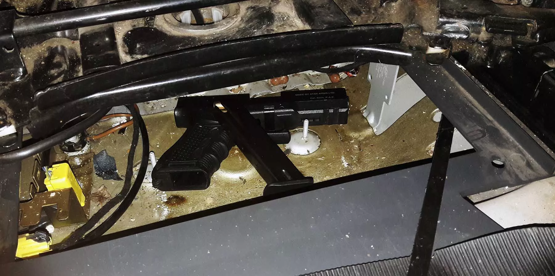Uz pomoć donirane opreme od strane Vlade SAD, putem programa EXBS, ovlaštena lica UINO izvršila su dubinsku kontrolu vozila i pronašli sakriven gasni startni pištolj model ZORAK 917-T 9mm, a koji je pripadao suvozaču K.A., od kojeg je isti privremeno oduzet. Daljnim pregledom vozila pronađene su i druge skrivene stvari kao: telefoni (iPhone i Samsung) kuhinjske noževe, aparate za mjerenje pritiska i drugu robu koja nije bila prijavljena za redovno carinjenje.