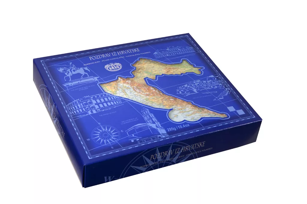 Naime, bombonjera je bila Kraševa i na njoj je pisalo 'Pozdrav iz Hrvatske'. Na bombonjeri je slika djelomice vidljive mape Hrvatske, no kada se poklopac podigne, vidi se ostatak koji prikazuje cijelu kartu gdje je granica između Slovenije i Hrvatske ucrtana na sredini Piranskog zaljeva.