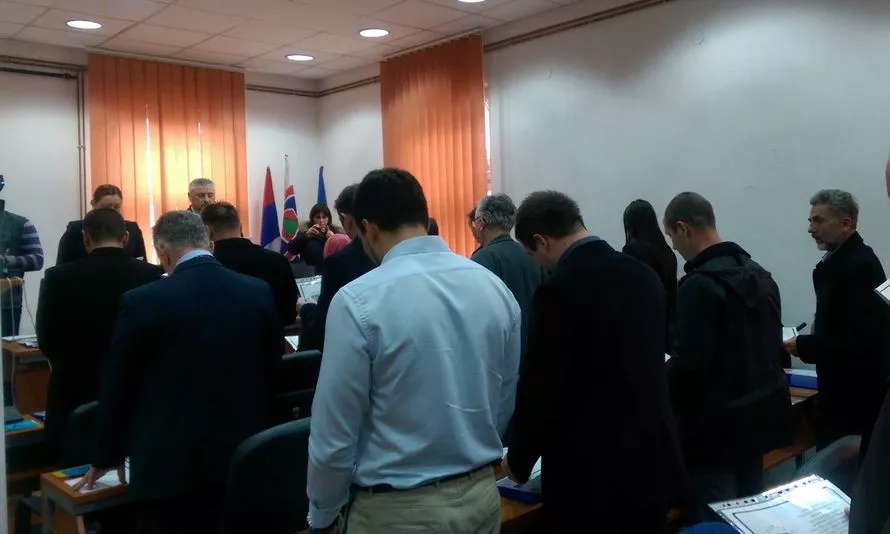 Fejzić je prekid zatražio nakon što su razriješeni dosadašnji odbornici i rukovodioci sa funkcija, te polaganja svečane zakletve novog 21 odbornika.