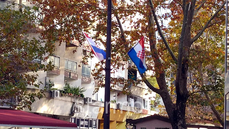 U centru Mostara na stubovima javne rasvjete postavljene su zastave nekadašnje tzv. Hrvatske Republike Herceg-Bosna (HRHB).