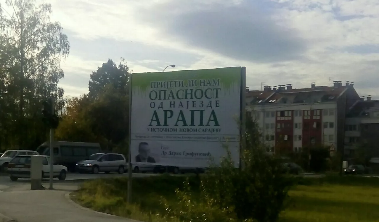 Omladinsko udruženje „Alarm“ iz Istočnog Sarajeva organiziralo je predavanje krajem septembra diskriminirajućeg naziva "Prijeti li nam opasnost od najezde Arapa u Istočnom Novom Sarajevu". Građane su na predavanje pozivali sa ogromnog plakata u centru općine. Gost predavač bio je dr. Darko Trifunović.