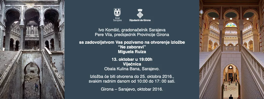 Gradonačelnik Sarajeva Ivo Komšić će u četvrtak (sutra) u 19.00 sati u auli Vijećnice, otvoriti izložbu pod nazivom „Ne zaboravi“ katalonskog fotoreportera Mikela Ruiza iz Girone. Riječ je o ratnim fotografijama iz vremena opsade Sarajeva, kao i o fotografijama iz Srebrenice, nastalim nakon rata.