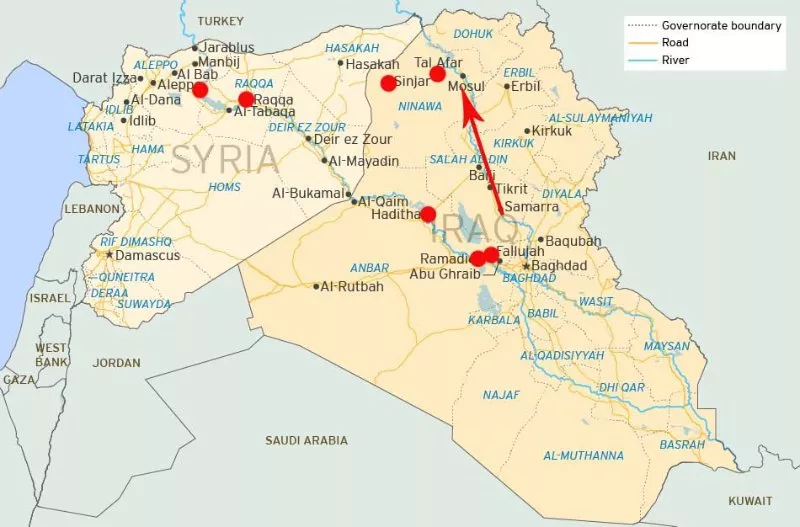 Početkom 2014. godine ISIL je uspio regrutirati i proširiti se kao rak po sunitskim područjima Iraka od Ramadija na zapadu sve do Mosula na sjeveru Iraka.