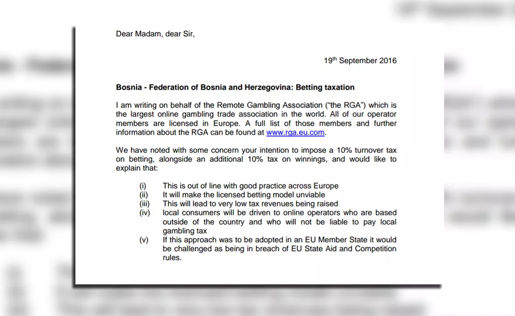 Izvršni direktor najvećeg trgovačkog društva za online klađenje Remote Gamblig Association (RGA) sa sjedištem u Londonu i Briselu upozorio je federalne vlasti da zakon o igrama na sreću kakav planiraju usvojiti u Federaciji neće donijeti željene rezultate, piše Patria.
