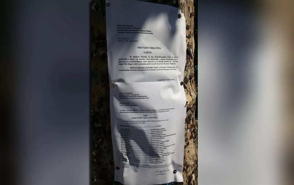 Ne služi se HDZ BiH u Stocu samo lažiranjem biračkih spiskova. Prije nekoliko dana predsjednik Općinske izborne komisije Ivan Perić potpisao je obavještenje u kojem se navodi da se „biračko mjesto iz Javne ustanove Dječji vrtić prebacuje u privatni objekat Nike Raguža“!?
