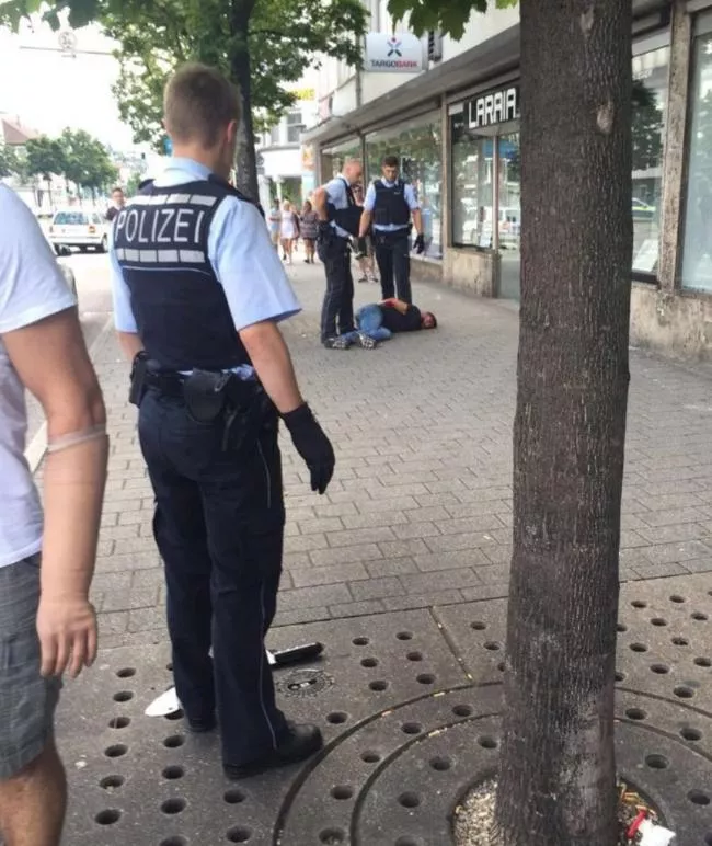 Na fotografijama koje su se pojavile na društvenim mrežama, muškarac je svezan lisicama, leži na ulici i okružen je policijom. Policija je utvrdila da je napadač dvadesetjednogodišnjak sirijskog porijekla.