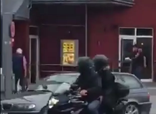 Na prvom snimku vidi se muškarac obučen u crno kako puca na cesti. Ljudi u panici vrište i bježe. Drugi video snimljena je iz stana iznad šoping centra. Čuju se građani kako se nadvikuju sa napadačem i on kako galami na njih, nakon čega je zapucao.