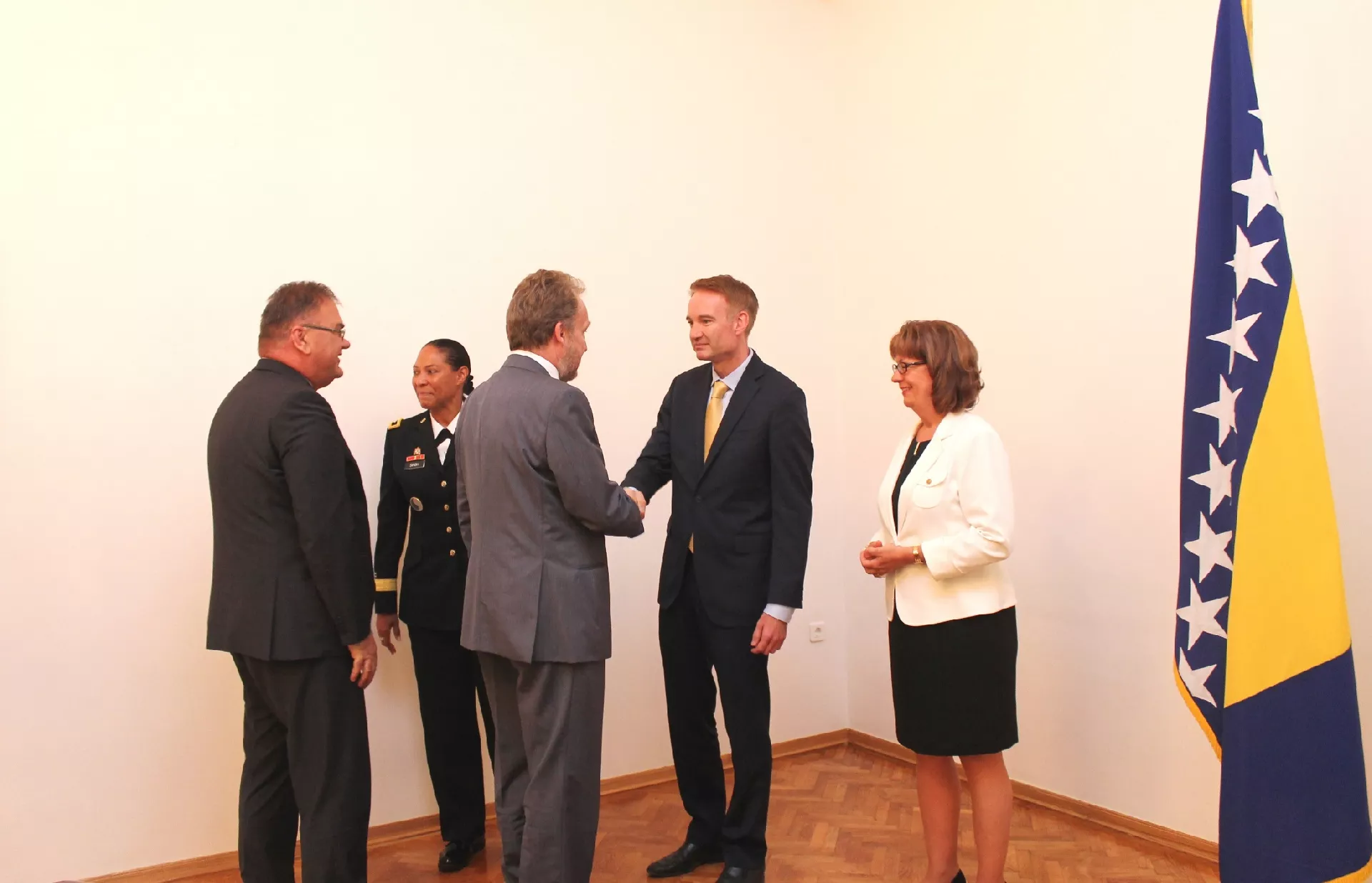 Zamjenik pomoćnika Carpenter, koji je zadužen pri Ministarstvu odbrane SAD-a za Rusiju, Ukrajinu i Evroaziju, a u kontekstu aktuelnih vojno-sigurnosnih odnosa u evroazijskoj regiji, zahvalio se na aktivnoj ulozi koju Bosna i Hercegovina ima u borbi protiv svih vidova radikalnog ekstremizma i u podržavanju globalne koalicije koja se suprotstavlja takozvanom ISIL-u.