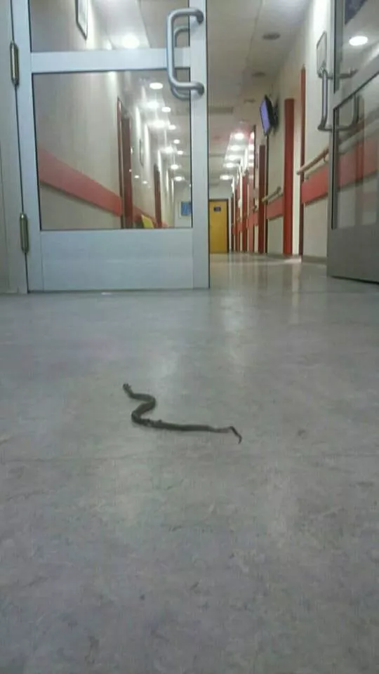 Na društvenoj mreži Facebook, tačnije u grupi Pedijatrija Jezero objavila ju je žena koja je jučer bila na Klinici, ugledala zmiju i uslikala je.