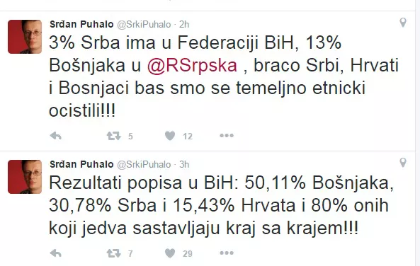Psiholog Srđan Puhalo na svoj način pojašnjavao je rezultate popisa te je napisao: