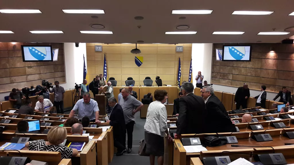 Delegati Doma naroda Federacije BiH prekinuli su današnju hitnu sjednicu na kojoj su po hitnom postupku raspravljati o Prijedlogu zakona koji bi omogućio konverziju kredita iz švicarskih franaka u eure, piše Patria.
