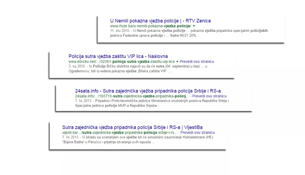 Ali, šta je sa praksom? Do sada su redovno, nekad dan, nekada nekoliko dana unaprijed bilo MUP RS ili neka druga policijska agencija u BiH ili Oružane snage BiH, najčešće saopćenjem za javnost preko medija, najavljivali da će na određenom području biti izvođene vježbe.